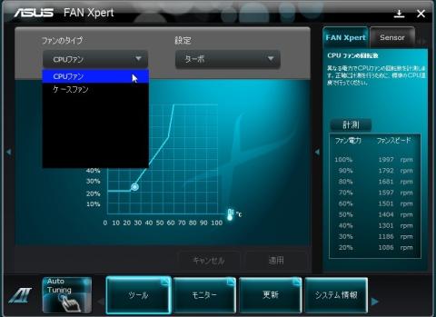 INSTALLします ツールからFAN EXPERTを選びCPU、ケースFANなどを
