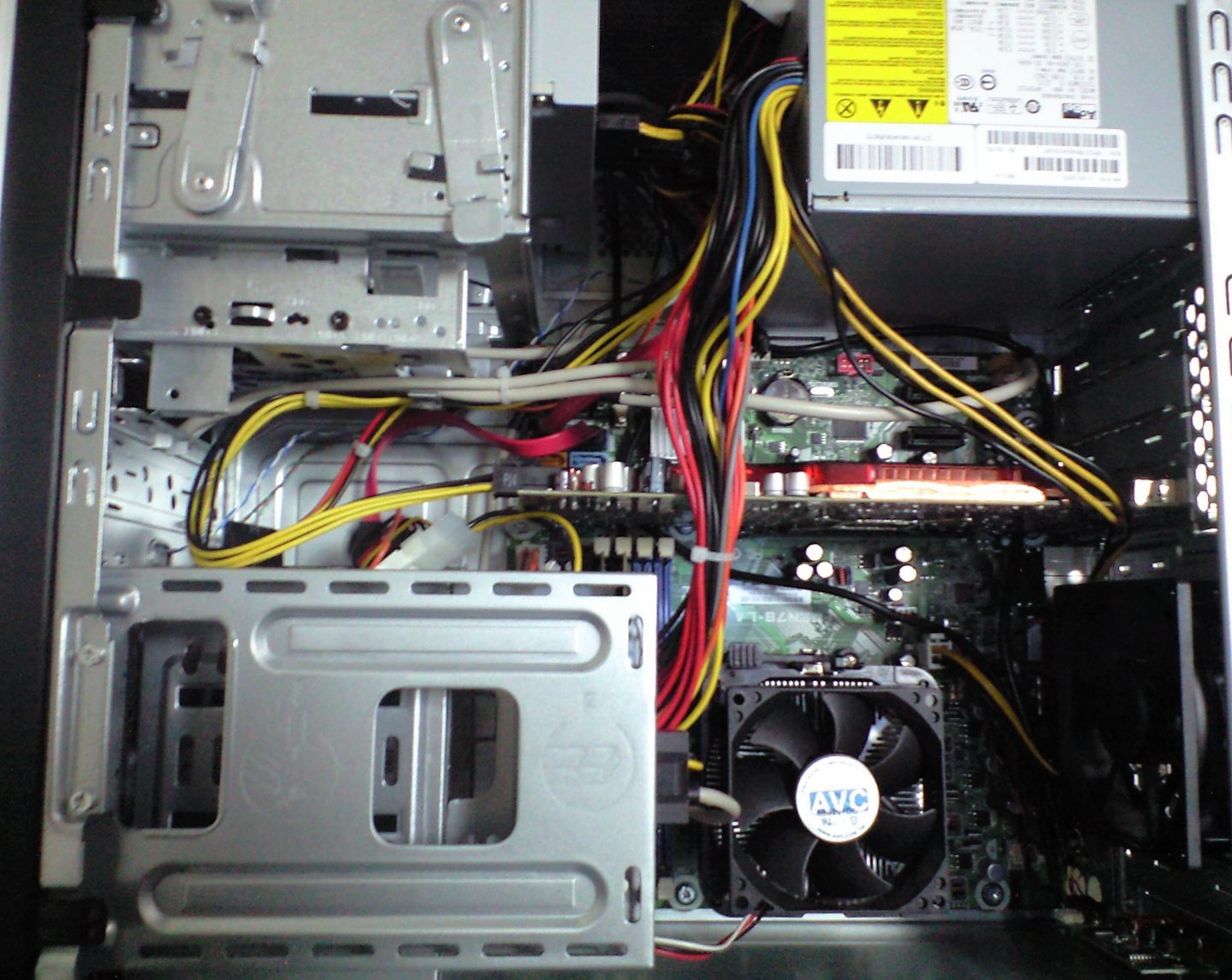 一般的なデスクトップPCと違って「CPUが下」に来ています(上下逆)。