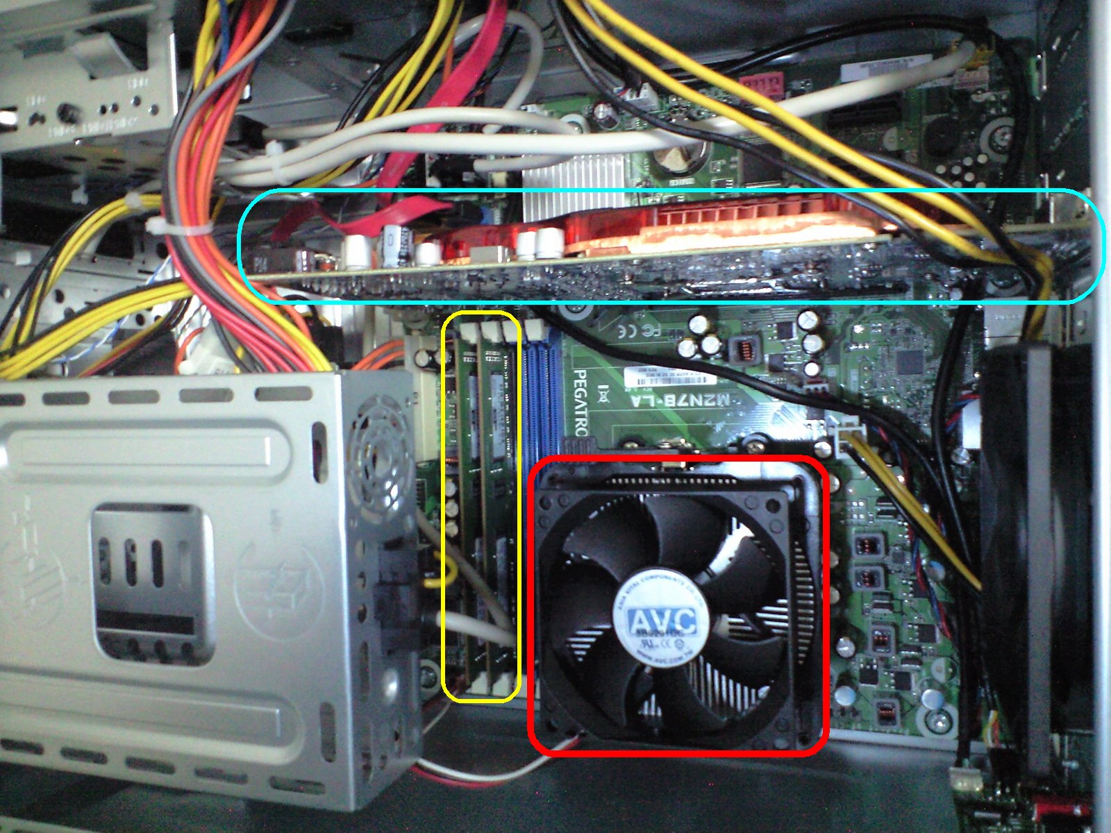 赤い四角(で囲った部分) : CPU + ヒートシンク + FAN