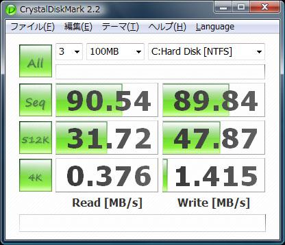 HDD:WesternDigital WD740GD×3 RAID0 ストライプ構成(オンボードRAID)