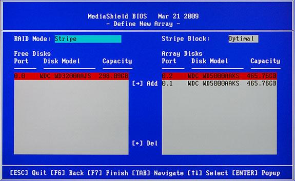 RAID0構成で使用したWD5000AAKSは250GBプラッタ(最新は320GBプラッタになっている)で、WD3200AAJSよりも古いHDDとなります。今回はストライプサイズをシーケンシャル性能が有利になりやすい、128Kで設定しています。