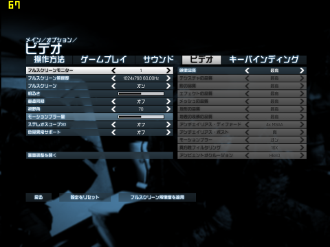 今回はレビュー規定の”フルスクリーン解像度:1024x768、映像画質:最高”に設定しています。