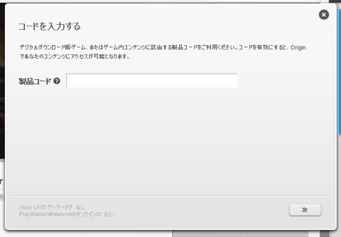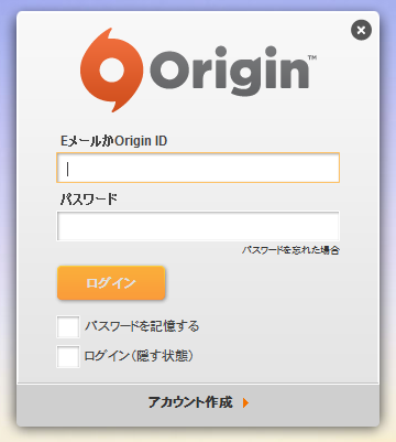 Originが起動しました。アカウントがある場合には入力、なければ「アカウント作成」を押します。