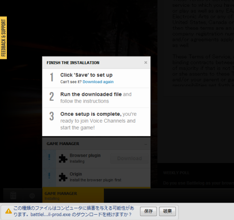 このURLを開くと、いきなり OriginSetup.exe のダウンロードが始まります。