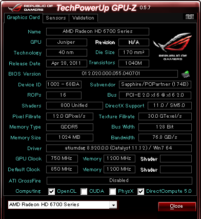 GPU CLOCK 750MHz のHD6770ではこんなもんでしょうか。