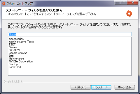 ダウンロードが終わったら OriginSetup.exe を実行します。