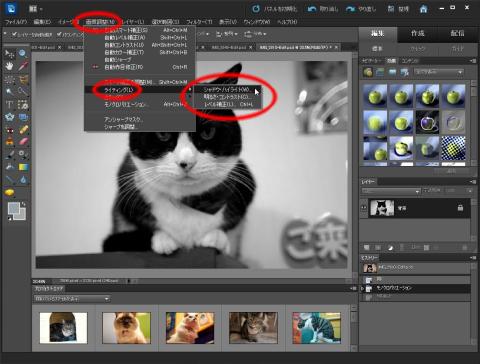 この画面から画像を編集するには選択した画像の上で右クリックで出るメニューから「Photoshop Elements Editorで編集」を選択します。