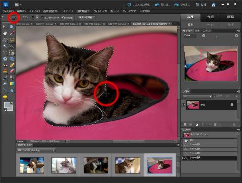 続いて対象物(今回はネコ)上をドラッグしていきます。