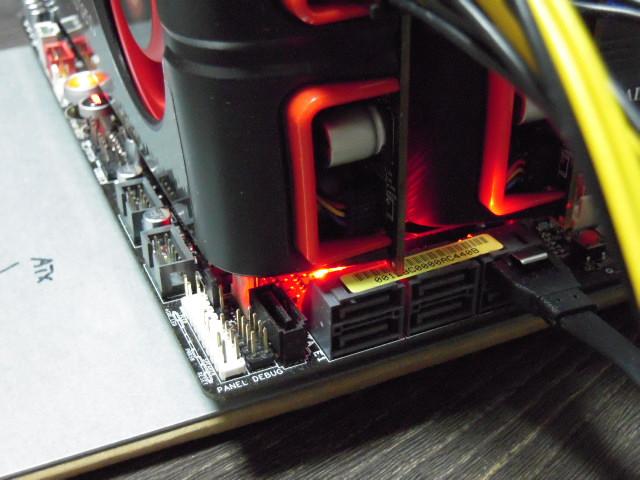 また、2スロ占有するカードであるためマザーボード上のコネクタ類も塞がってしまいました。