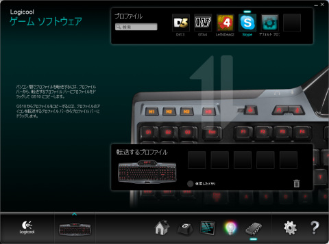 G510の各種設定はLogicool ゲームソフトウェア上から行う。