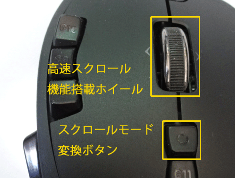 ホイールを回した時のカチカチがある「click-to-click」モードと、指で回すと回り続けるHyper-fast scrolling」モードを切り替える方式になっています。