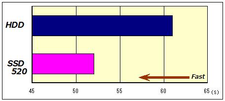 結果は HDDも頑張っています、 が、 SSD 520 の方が圧倒的に速いです