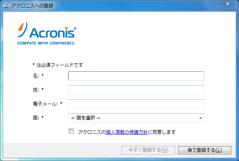 ユーザー登録ウィンドウが出てきたら、必要事項を書いて次に行くわけですけど、