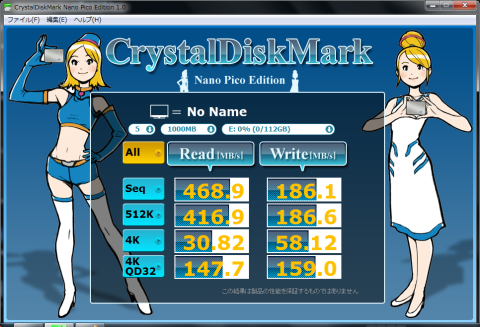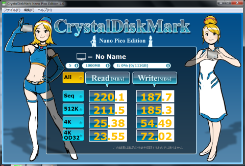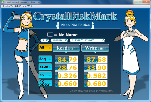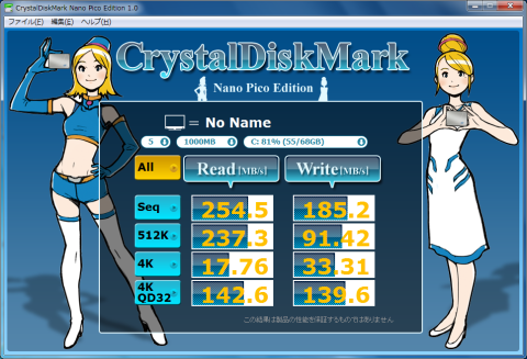 3. CrystalDiskMark Nano Pico Edition のスコアをインテル(R) SSD 520への交換前後