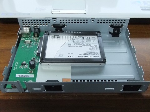 こうなります。あとはHDDを外した逆の手順でHDDベイにSSDを取り付けていきます。