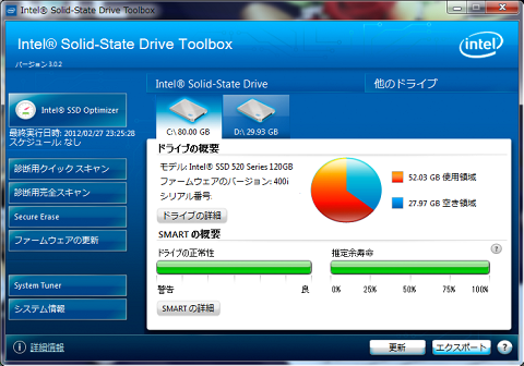 みました。これは同社SSD向けのツール集で、SSDの健康状態を示すS.M.A.R.T.の値の