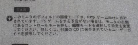 「デフォルトの画像モードはFPSゲーム向けに設定」と。ゲーミングディスプレイなんだなと実感します。