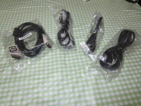 ケーブル類です。右から「電源ケーブル」「USBケーブル」「D-Sub15P」「DVI-D」です。DVI-Dはデュアルリンクケーブルです。コレを使うことで120Hzが実現できます。