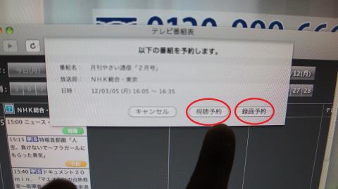 その3→「視聴予約」「録画予約」を選択します。