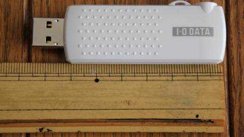 まるでUSBメモリのようにシンプル小さい。サイズは7.5cm程度。持ちやすいようにグリップ、持ち運びを想定してストラップが付けられるように工夫されている。側面には「miniB-CAS」が装着できるよう小さい差し込み口が・・・