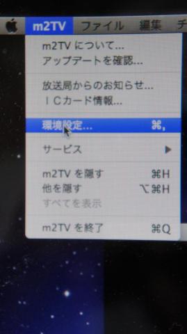 アップルマーク横の「m2TV」をクリックし、環境設定を選びます。