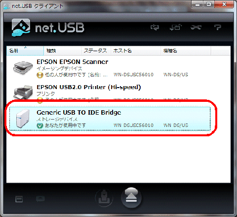 net.USBクライアントの操作ウインドウが表示されます。