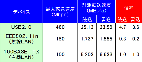 USBと有線LANの比較は納得いくとして、無線LANと有線LANは何故このような値になったのか・・・。