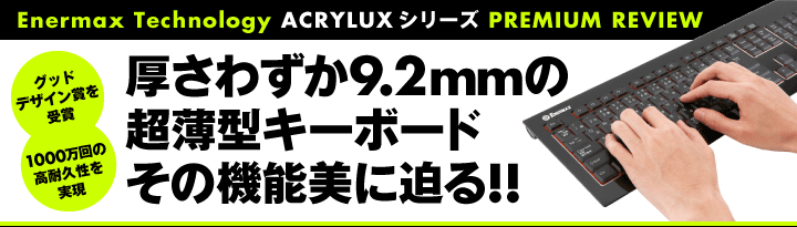 「ACRYLUX(アクリラックス)シリーズ」は、傷がつきにくい硬度7Hのアクリル素材を使用した、厚さわずか 9.2mm の超薄型なスタイリッシュキーボード。グッドデザイン賞や TAIWAN Excellent を受賞しており、有線、無線、ブラック、ホワイトの組み合わせで、全4製品がラインアップされている。