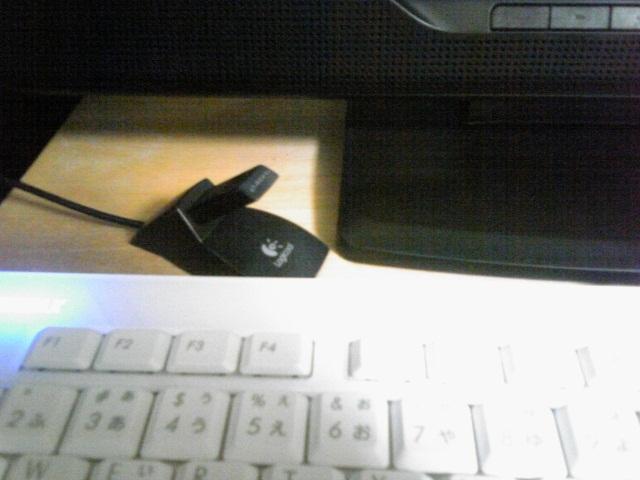 両サイドにUSBメモリーをセットすることは考えられず、利用方法を考えていたとき、モニターの下のマウスレシーバーが目に止まりました。