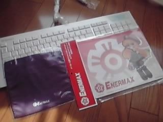 箱を開けたとき予想以上の美しさに唖然。エナーマックスのキャラクターのエナちゃんマウスパッドとエナーマックスロゴ入りのウエスが付属し...