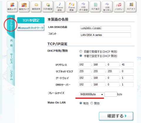 最初に設定したIPアドレスへブラウザでアクセスして設定画面に入ります。