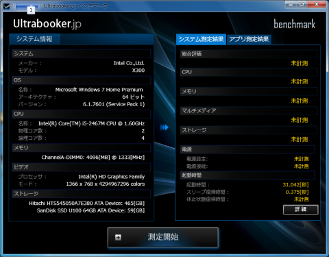 ウルトラブックのベンチマークソフトが出たので測定しました。