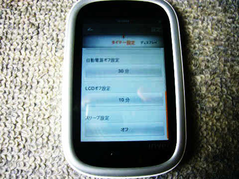 タイマー設定ー自動電源オフ設定ー30分、LCDオフ設定ー10分、スリープ設定ーオフ