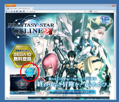 1、まず公式サイト(http://pso2.jp/)より