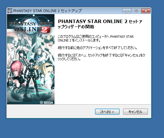 後でダウンロード先のフォルダのPSO2_SETUP.exeを実行すればインストールできます。