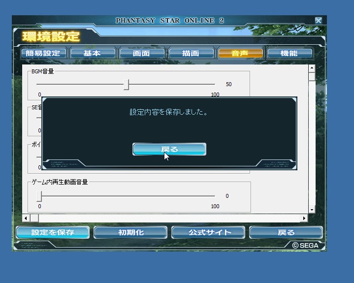 左下の設定を保存ボタンを押し、記憶させてから戻ります。