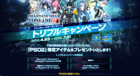 対象製品購入でオリジナル武器がもらえるトリプルキャンペーンの武器すべてが手に入るのが推奨ゲーミングPC一番の魅力かな? Windows7、Corei',Xbox360ワイヤレスコントローラーとこのオリジナル武器でPSO2キックスタートできる!