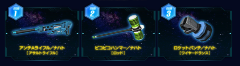 とりあえずレンジャーなキャラなので①のアンチAライフル/ナハトで(射撃129)ではじめは助けられました。 あとで別のシップにキャラを作ることになったらピコピコハンマーを試さないわけにはいかない!