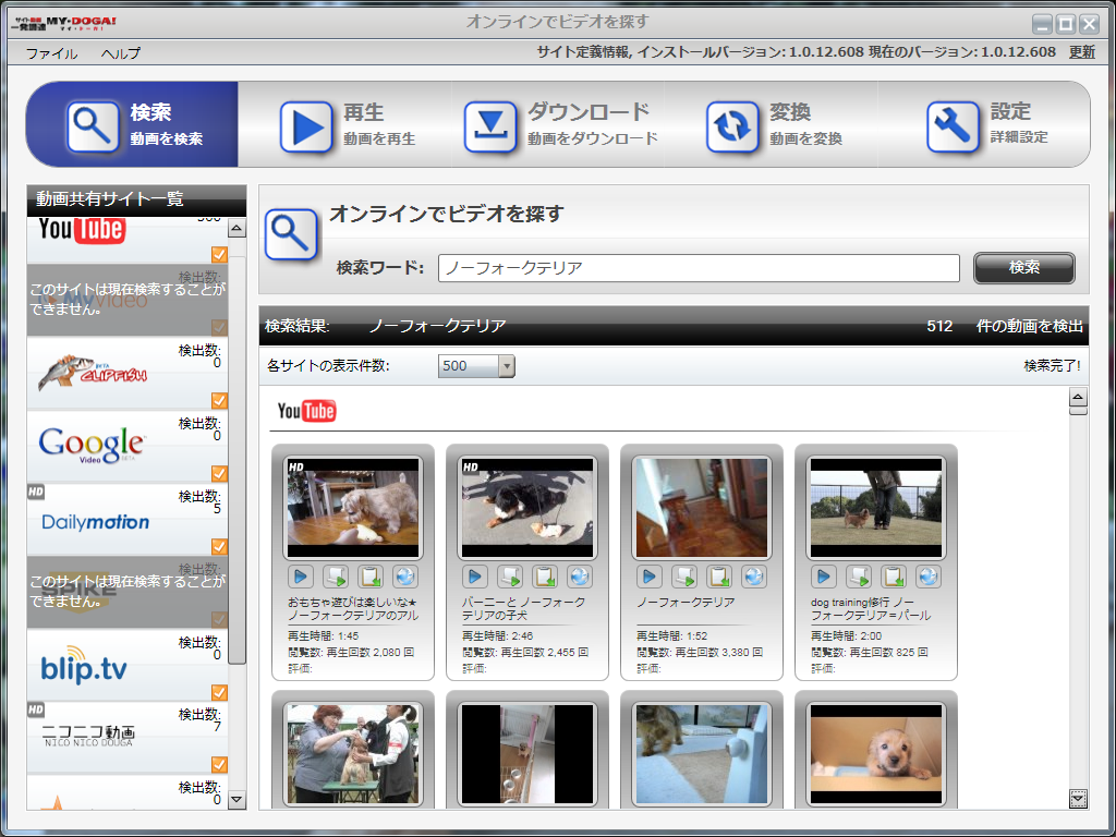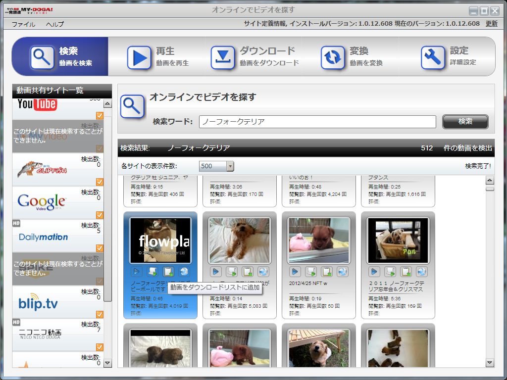 サイト動画一発調達 MY・DOGA!はその名の通り、サイトにある動画を一発で検索、ダウンロード、変換が出来るソフトウェアです。