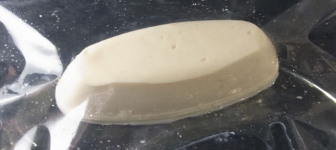 この豆腐、本当にやわらかくてパッケージから皿に移すだけでも型崩れしてしまう繊細さ。特に急な衝撃に弱く、あっというまにヒビが入ってしまいます。一方急激な力でなければわりと延びます。