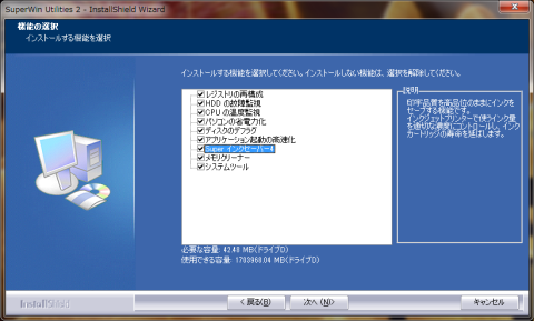 カスタムインストールを選ばないとHDDデフラグなどのソフトは自動でインストールされないので、これらの機能が必要な場合はカスタムインストールを選択してください。