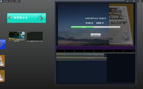 できた映像をファイルとして書き出すのですが、GPUを利用して一瞬で書き出し終了・・・キャプチャーするのが大変なくらい一瞬で終わった。。!30秒弱の動画役3秒で書き出し!