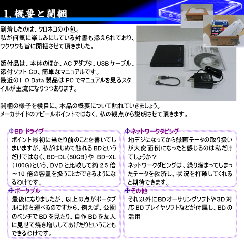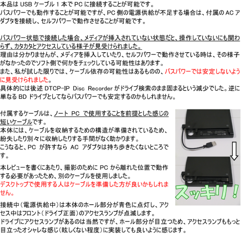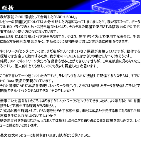 この度はネットワークダビング対応ポータブルブルーレイドライブ「BRP-U6DM」のレビューアー選出ありがとうございます。以下稚拙ながらレビュー...