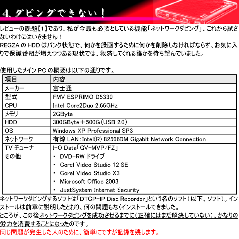 テレビ番組の録画再生は、REGZAの機能を使用して凌いできましたが、複数HDD接続に対応しないREGZA Z8000ではすでにパンク状態の自転車操業が続いていました。