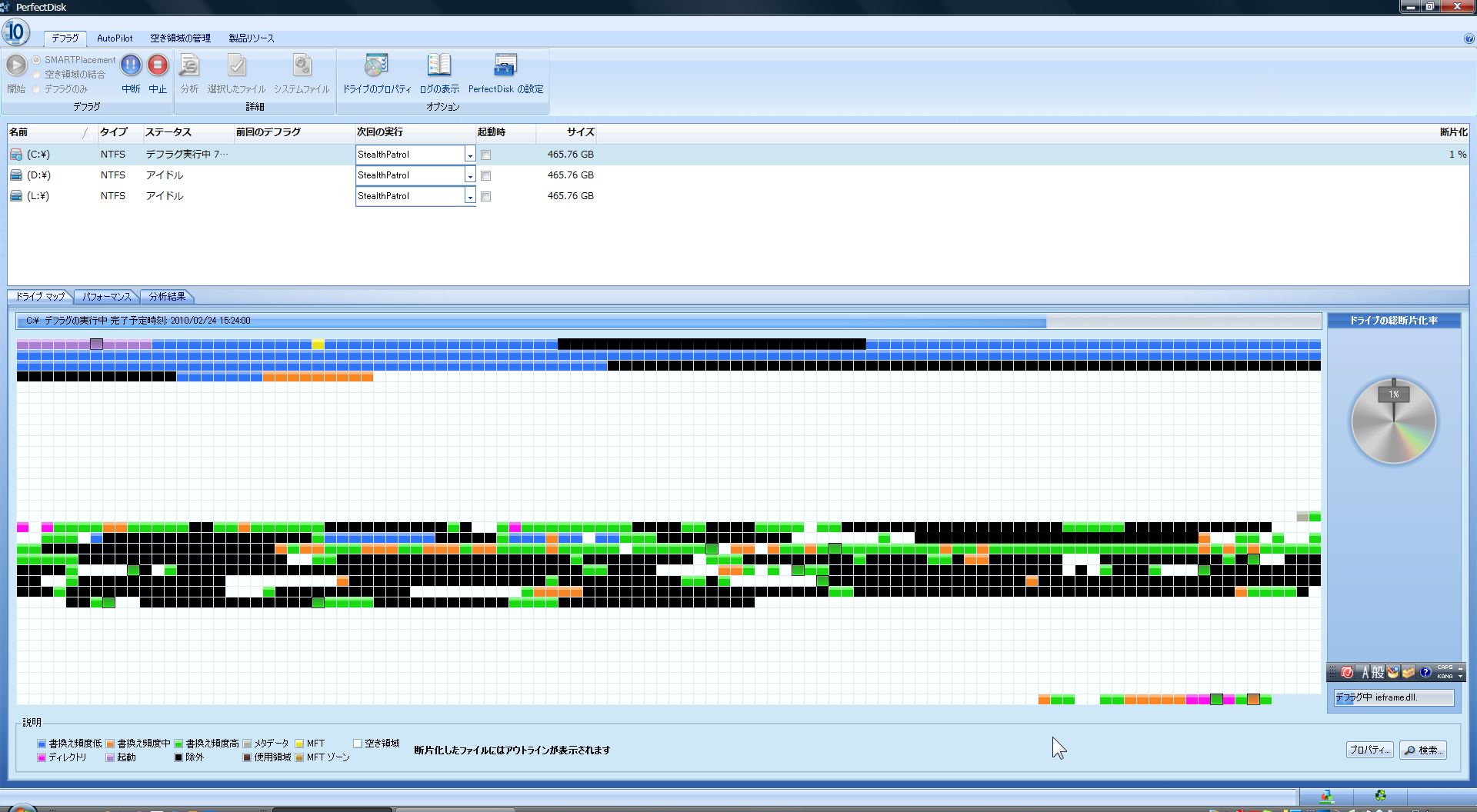15:00にインストール開始して、現在デフラグチェックを延々と始めるところです。→自分ではインストールとかを含めて初期設定は比較的簡単でした。それと競合するかも?って思うノートンユーティリティを先にアンインストールをしておきました。→多分ノートン関連が入ってる場合は大抵の場合おかしくなるので・・・→ノートン・ユーティリティやNISにはそういう傾向があります。