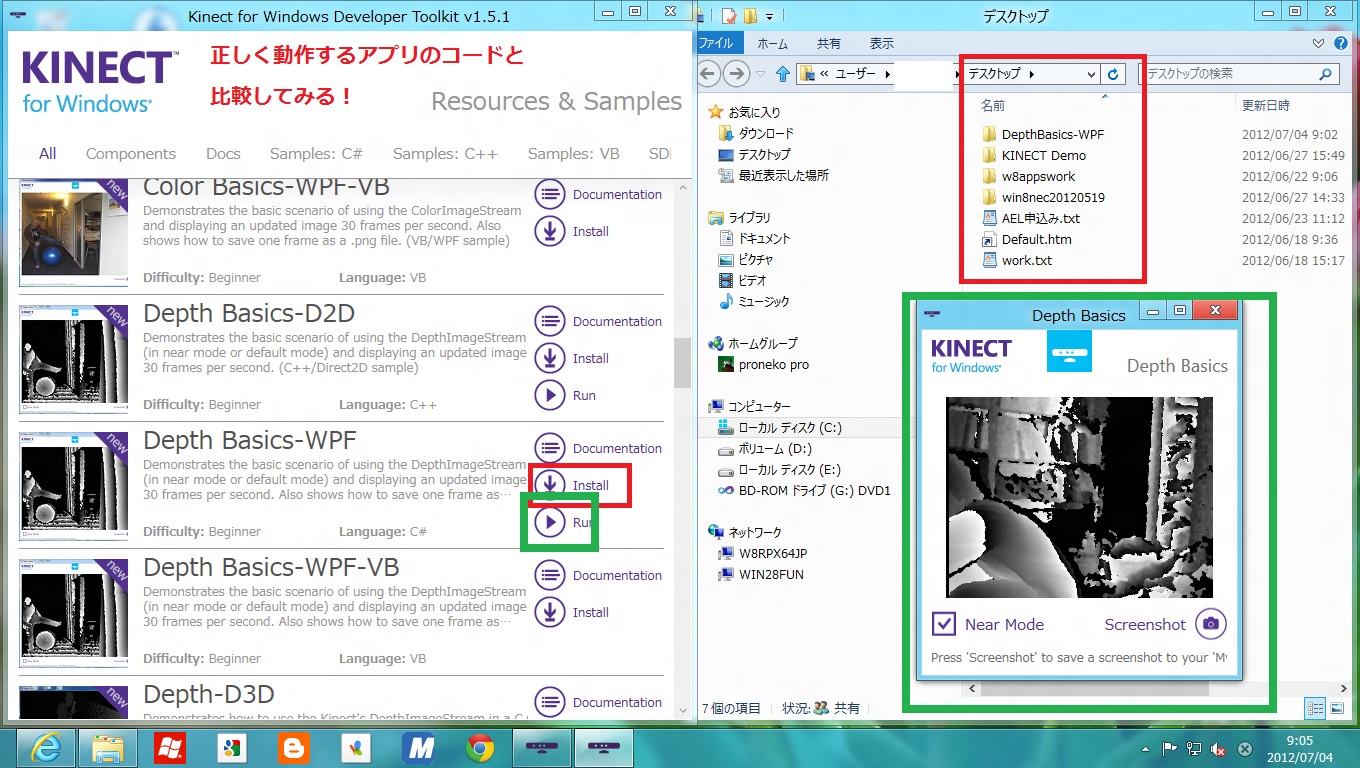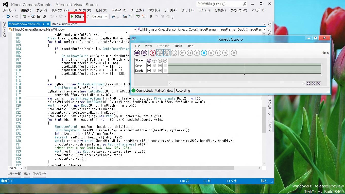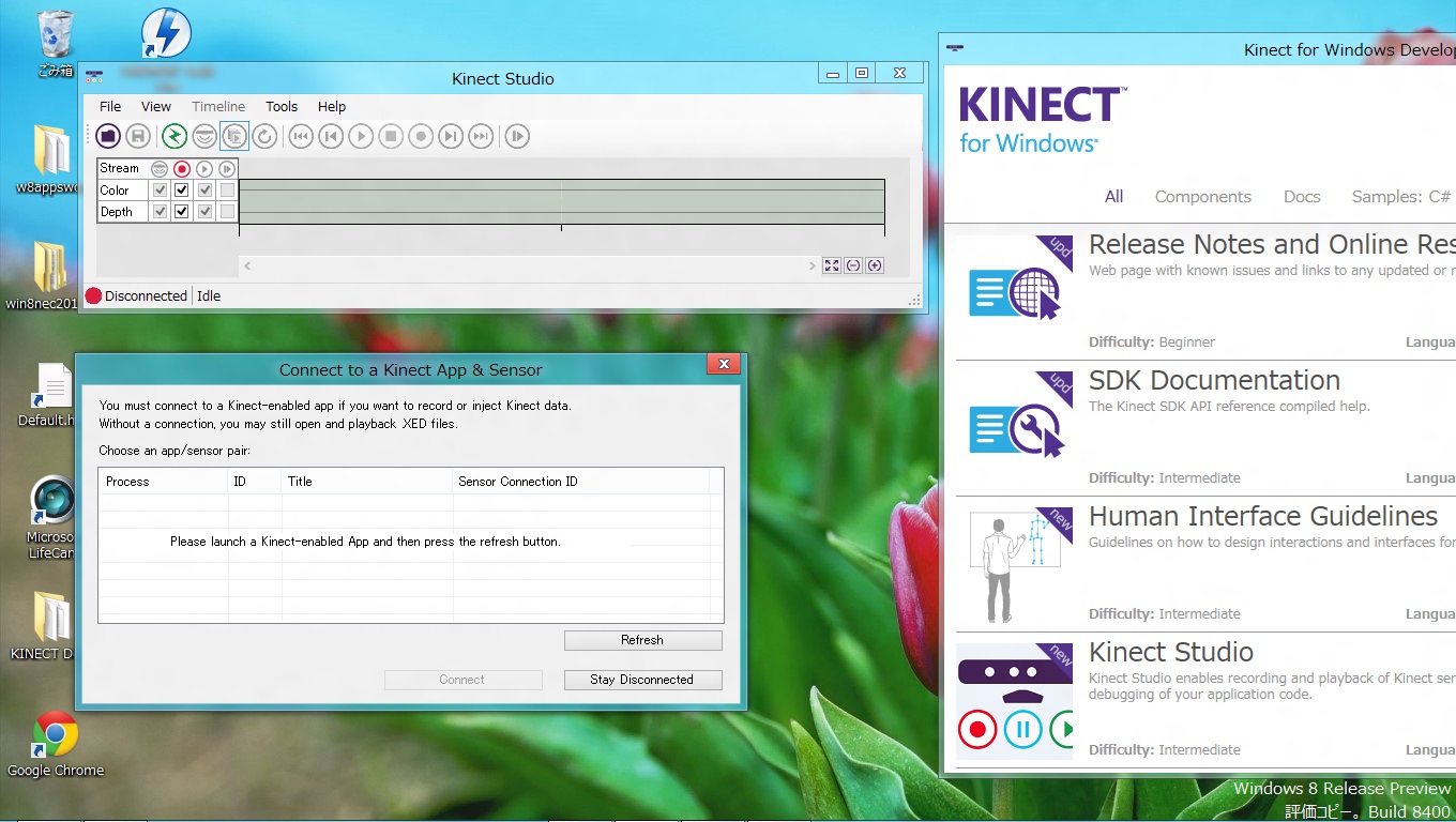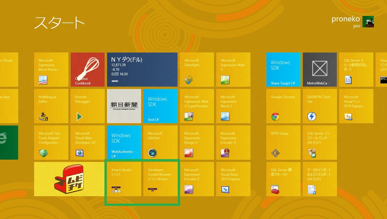 ----↓---- Kinect Sensor と Windows ストアアプリの連携の準備開始しました!-------