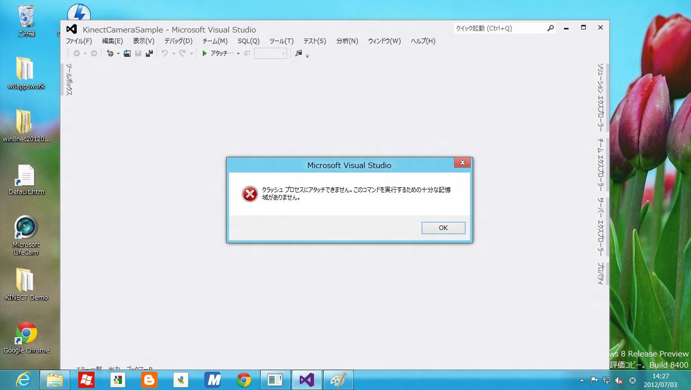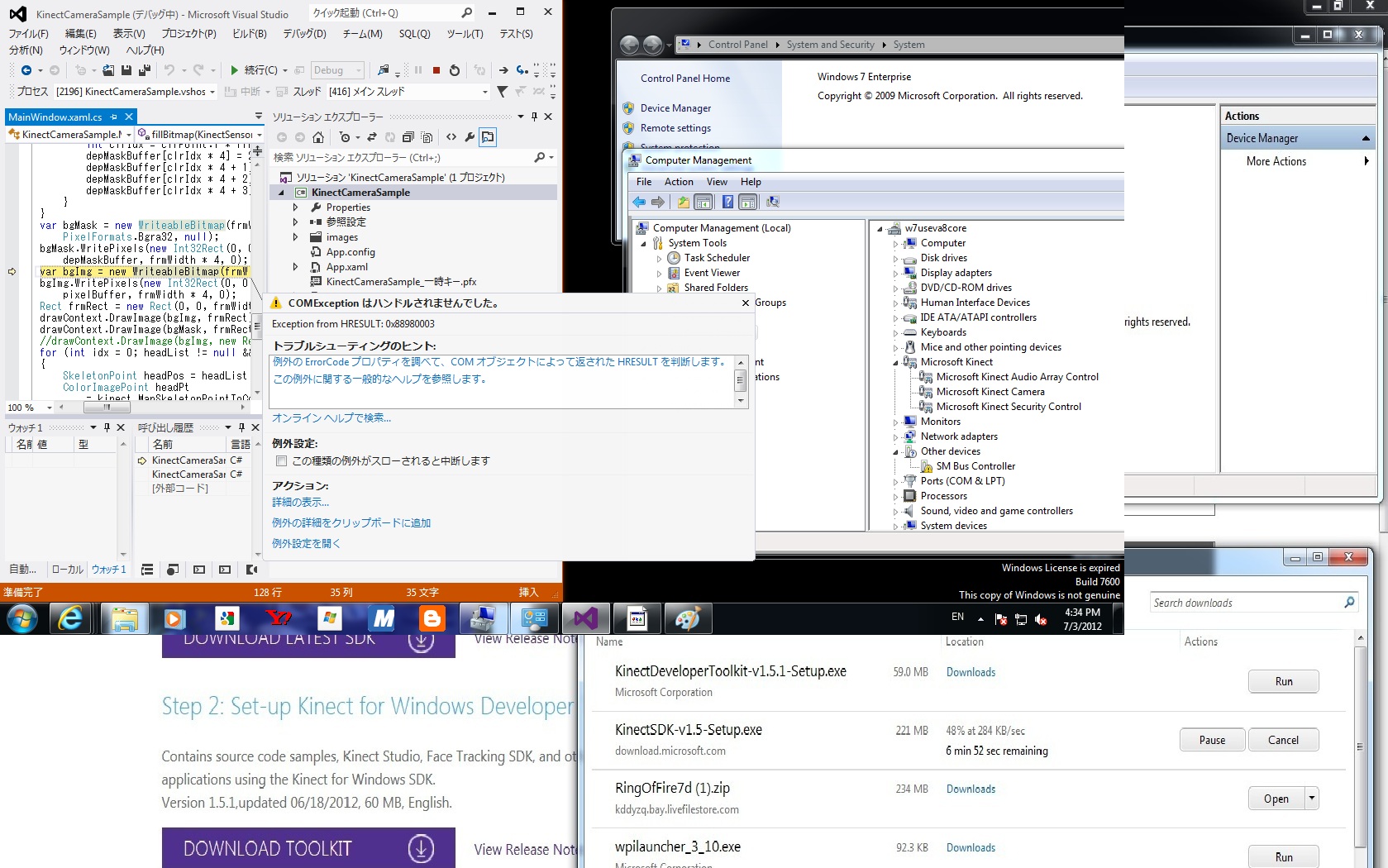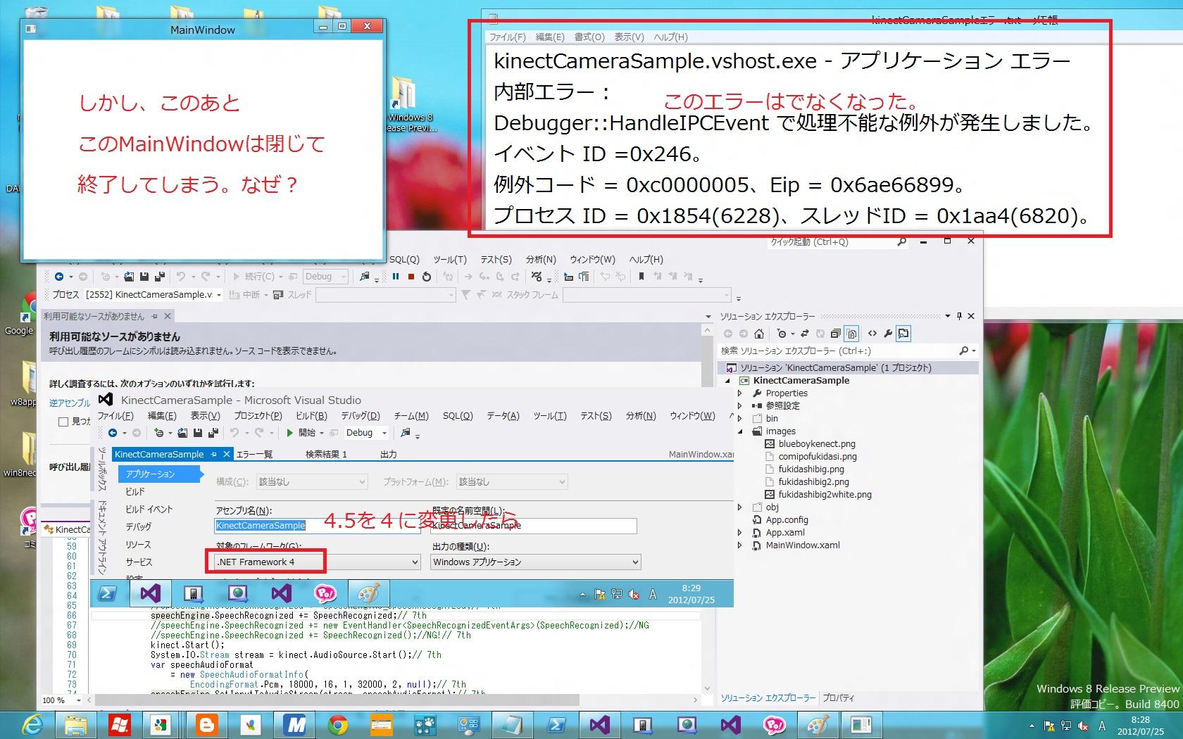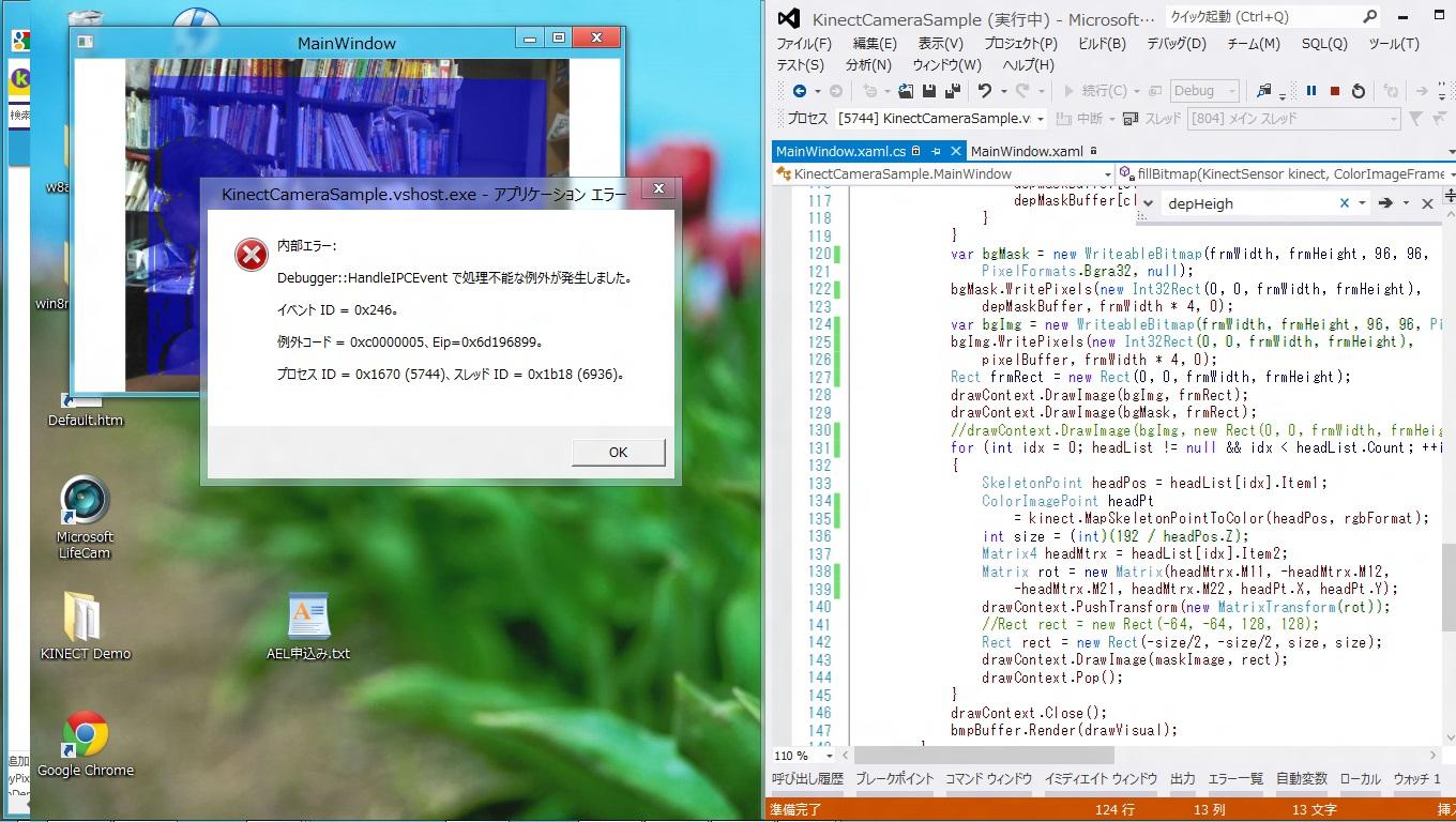 ----↓---- Kinect Sensor と Windows ストアアプリの連携の準備開始しました!-------