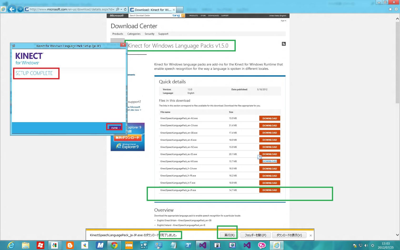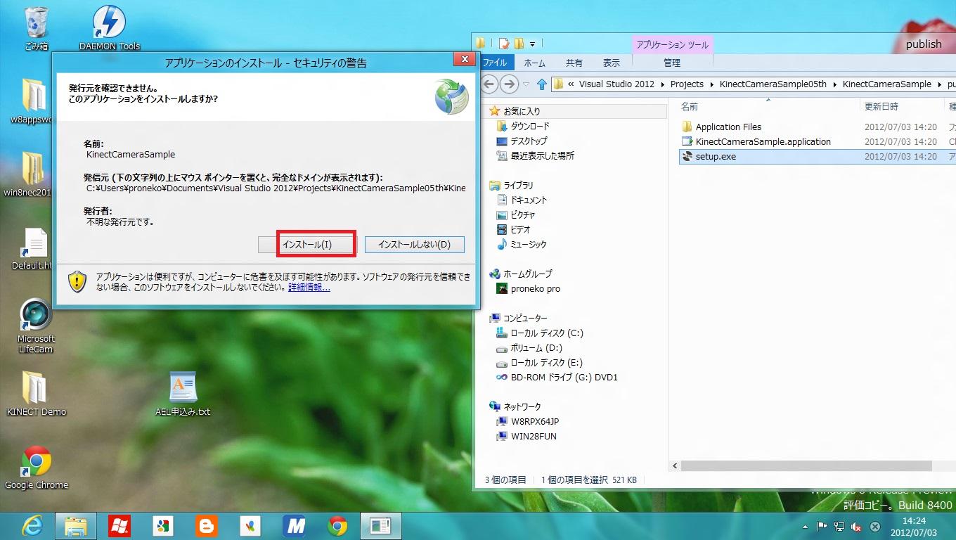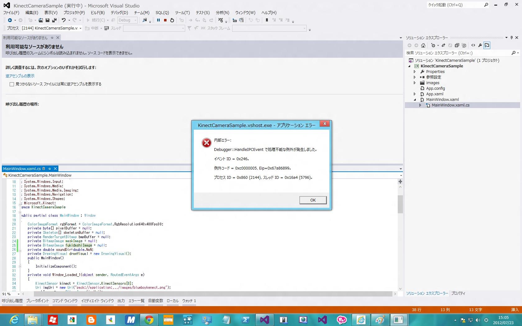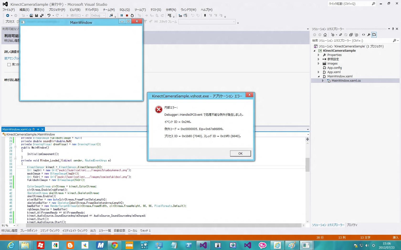 ----↓---- Kinect Sensor と Windows ストアアプリの連携の準備開始しました!-------