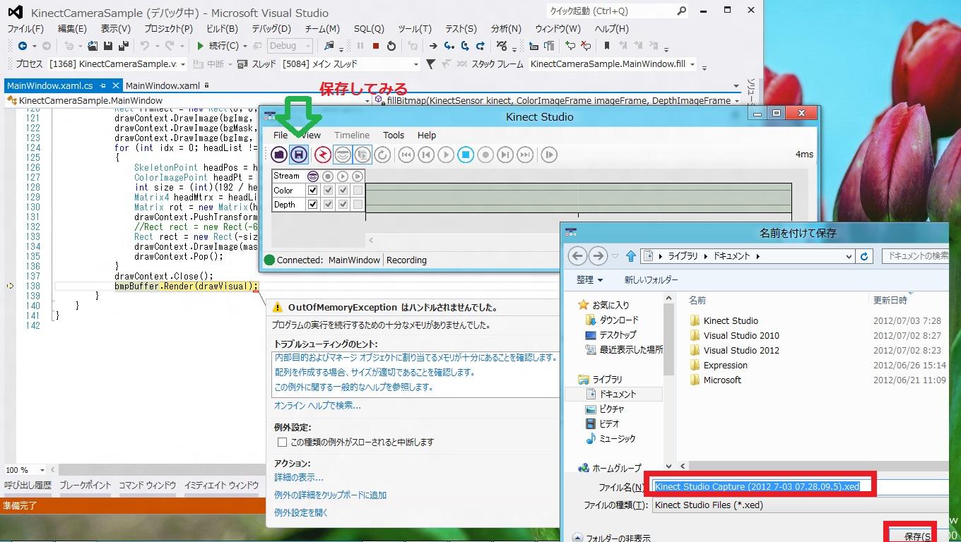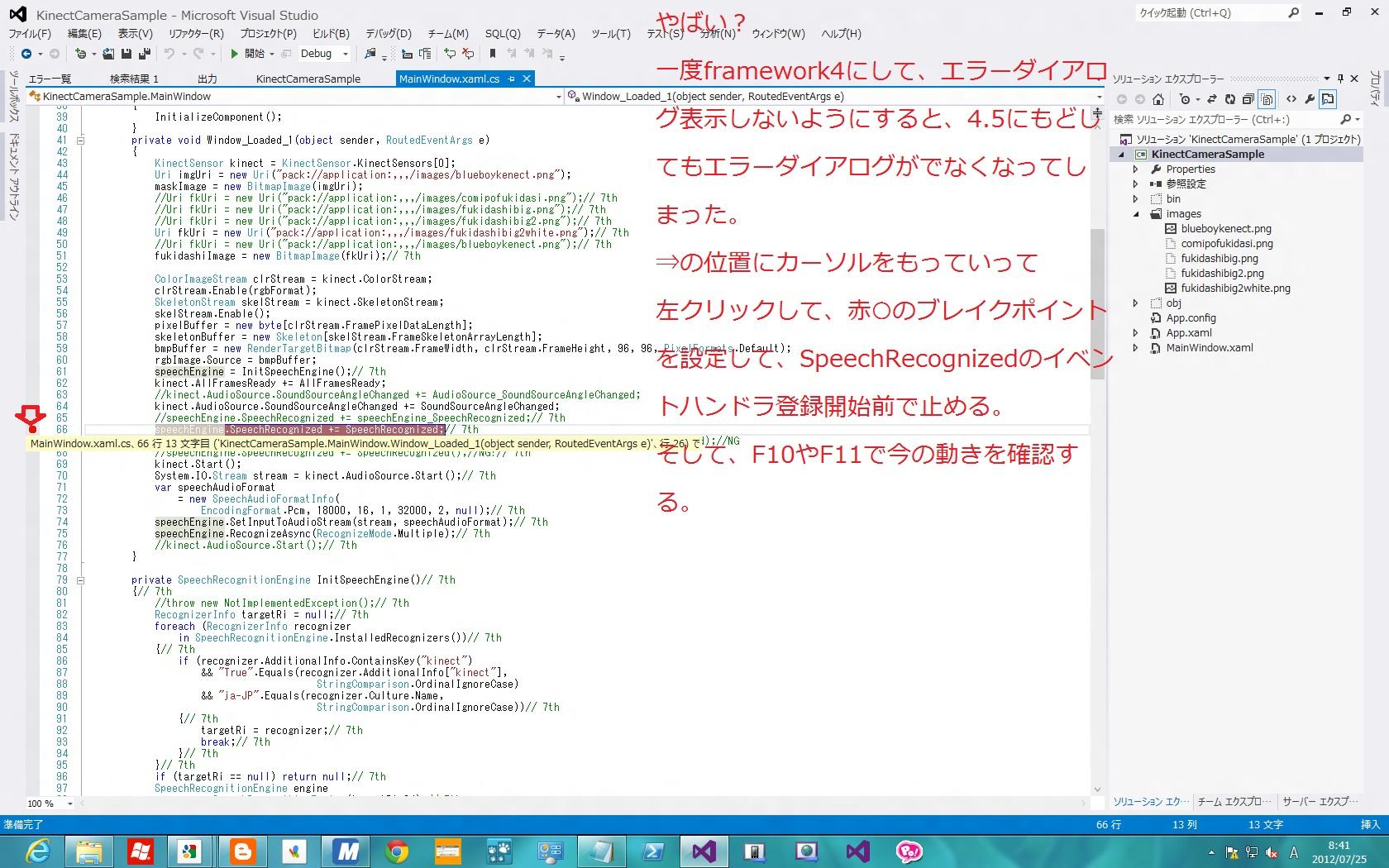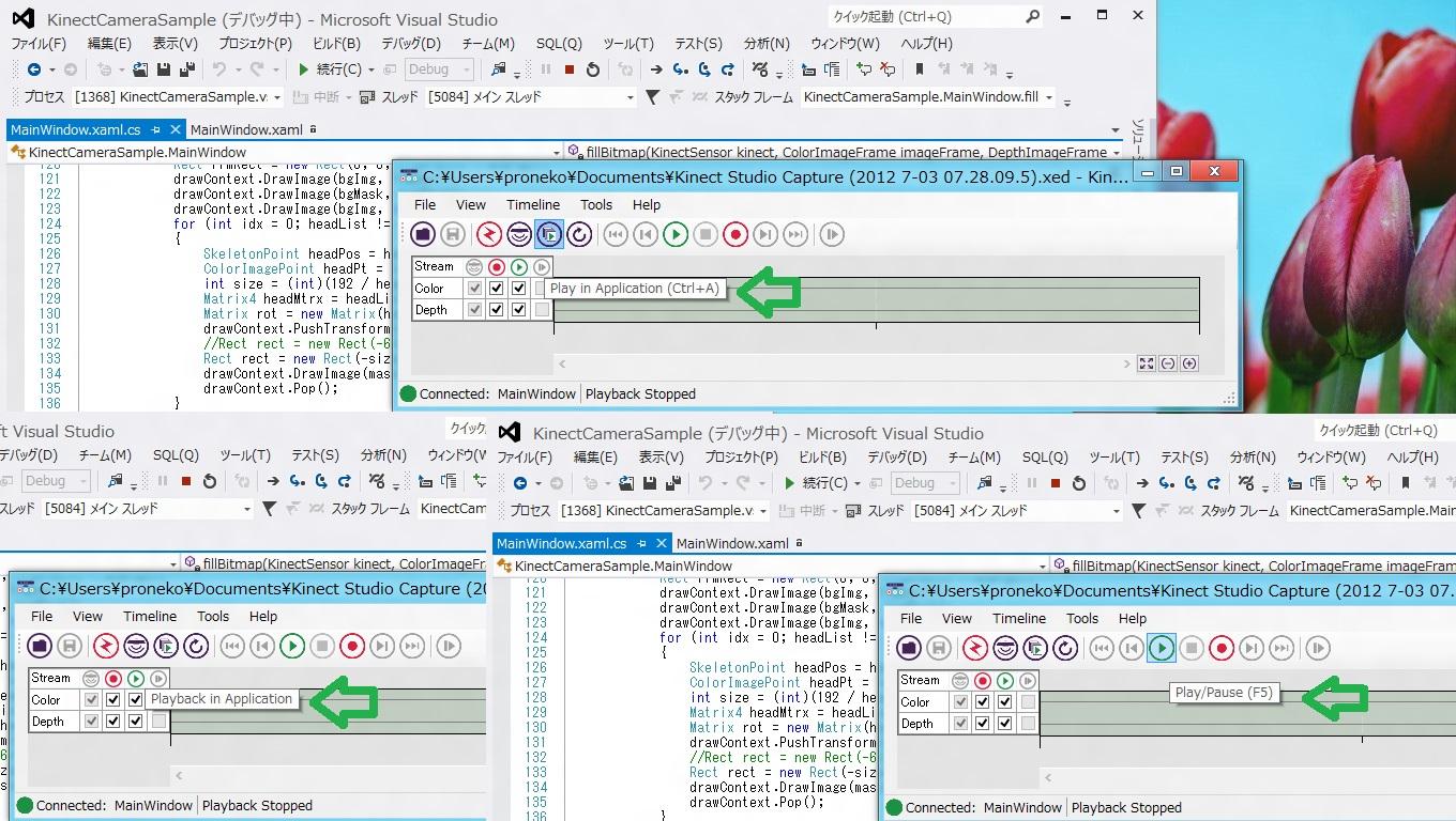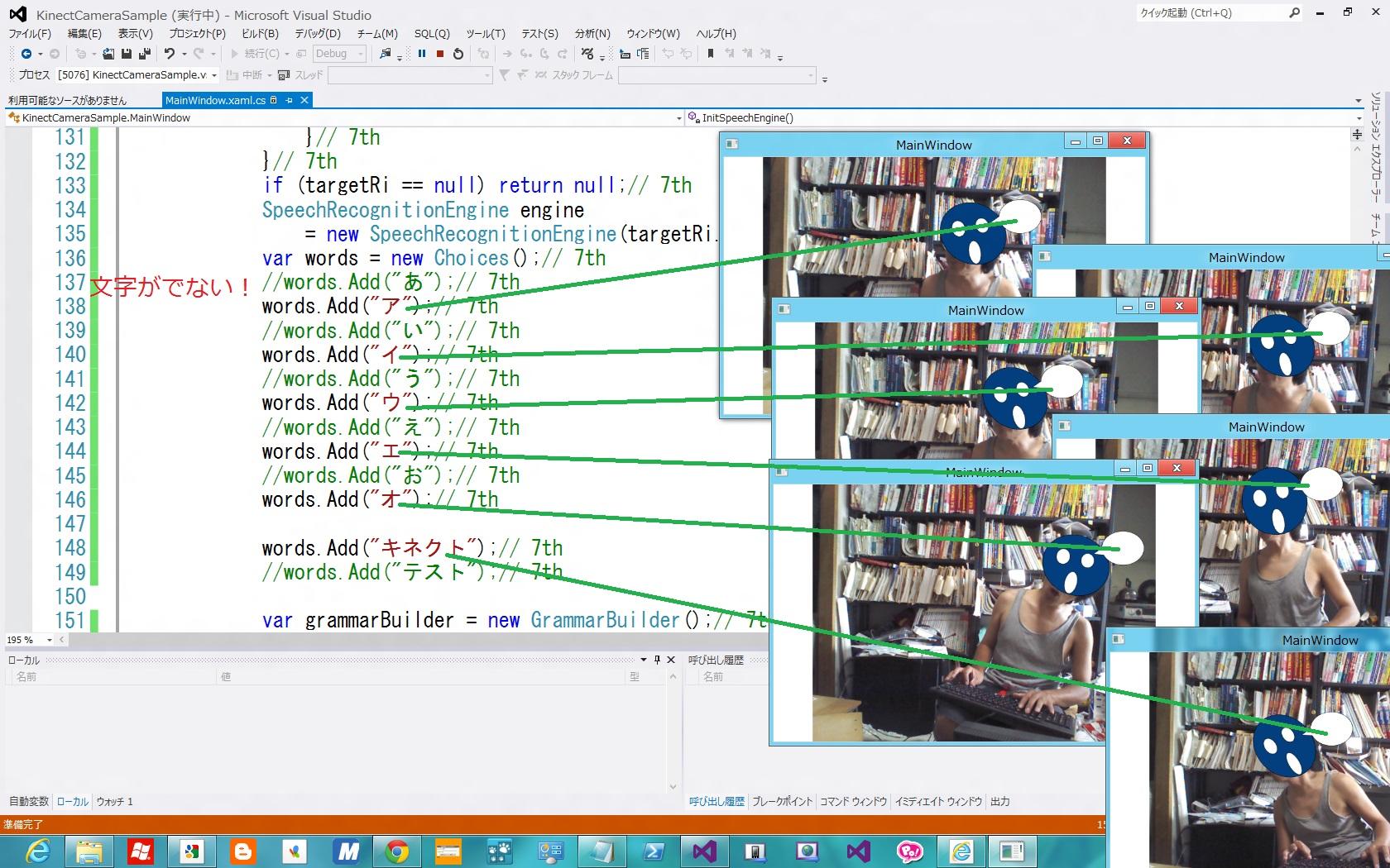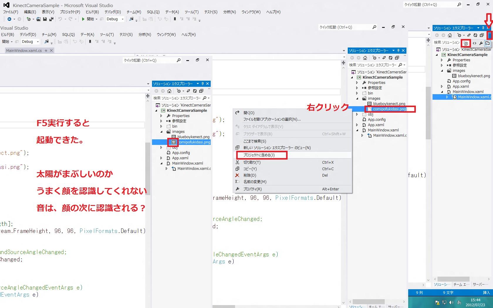 次はハンズオンテキストがそのままではエラーばかりなので、直しながらkinect の理解を深めてゆく。