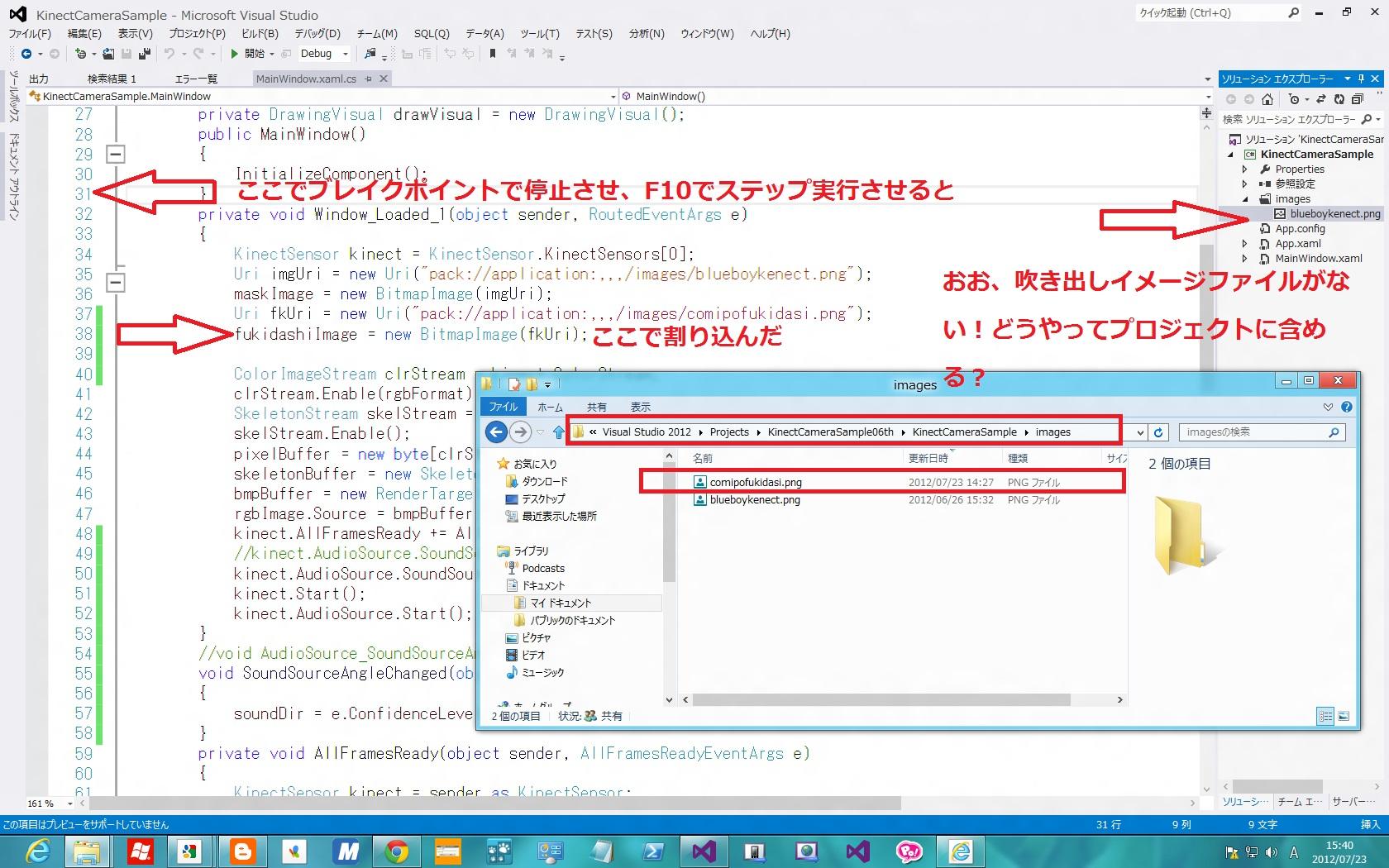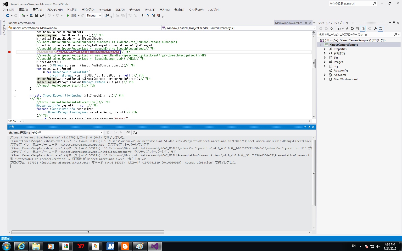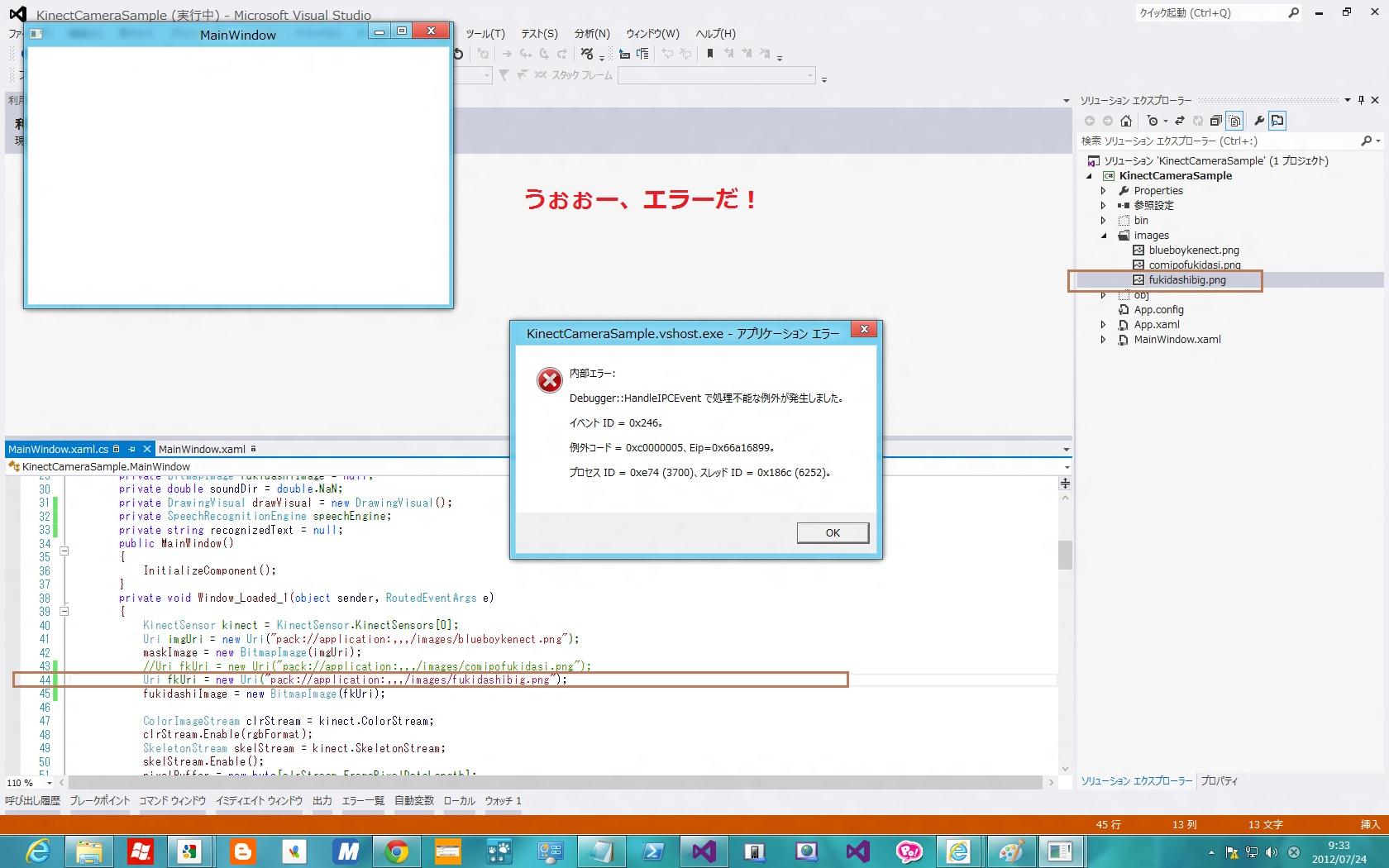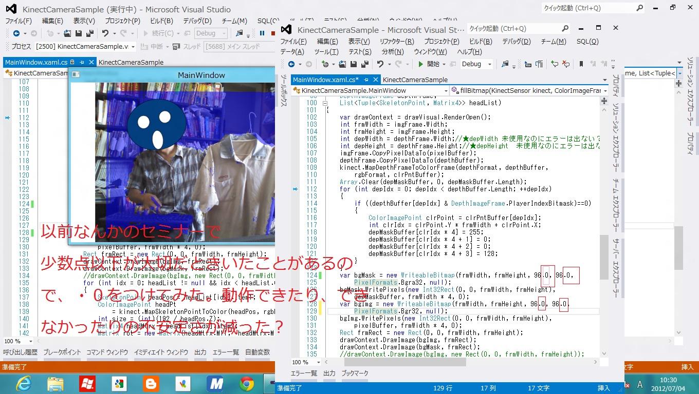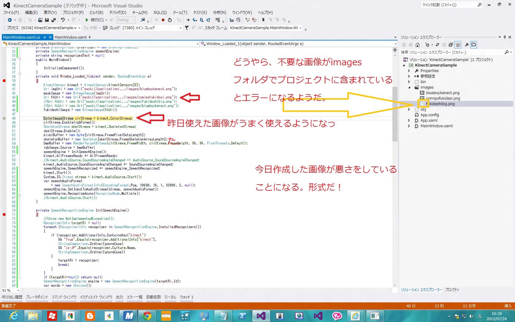 次はハンズオンテキストがそのままではエラーばかりなので、直しながらkinect の理解を深めてゆく。